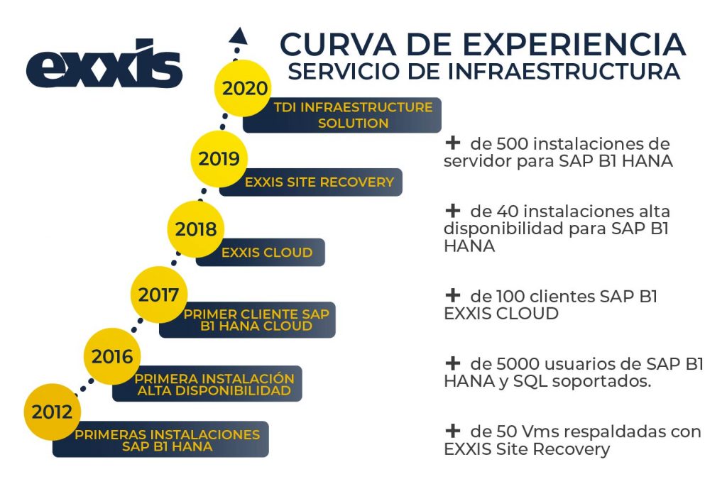 EXXIS es el líder en ventas e implantación de SAP Business One de Latinoamérica, EXXIS Cloud es nuestra plataforma de servicios gestionados de infraestructura certificadas para SAP Business One. Brindamos soluciones a la medida de cada cliente basándonos en la experiencia de las problemáticas y las buenas practicas recomendadas. EXXIS Cloud es parte del área de infraestructura y soporte de EXXIS, por tanto es un canal de comunicación y solución de sus necesidades tanto a nivel de infraestructura como a nivel servicios de SAP Business One.
